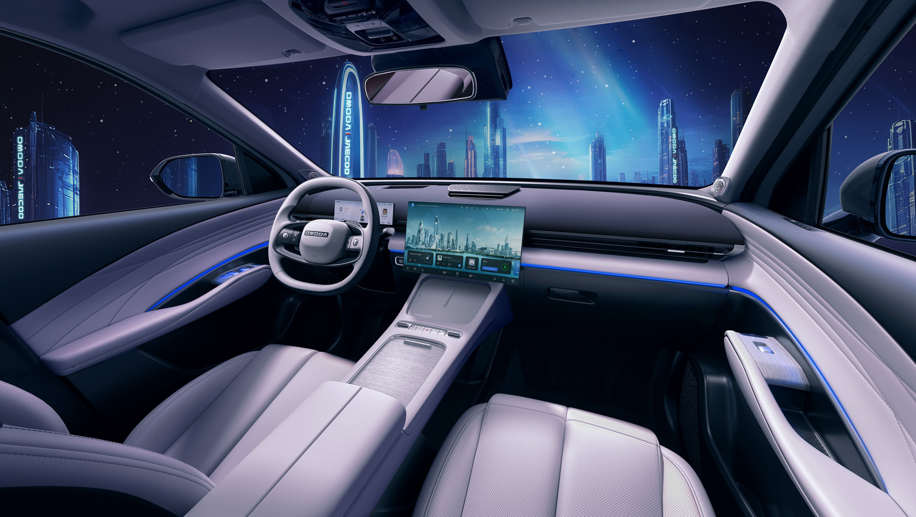 Следуя этому утверждению, интерьер нового футуристического кроссовера OMODA C7 выходит за рамки стандартной рабочей локации. Современные технологии и инновации позволяют превратить салон C7 в место для развлечений и отдыха, в частности – преобразовать его в мобильный кинотеатр с приятной и расслабляющей атмосферой.